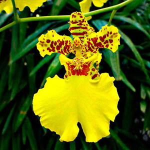 Oncidiums are Western Hemisphere orchids found in habitats ranging from sea level in the tropics to high elevations in the Andes Mountains. They are commonly known as “dancing ladies,” due to the resemblance of the broad, flat lips of their flowers to ruffled skirts. These flowers are most commonly yellow and brown, while some species are pink, red, magenta, green or white, many with exotic markings.