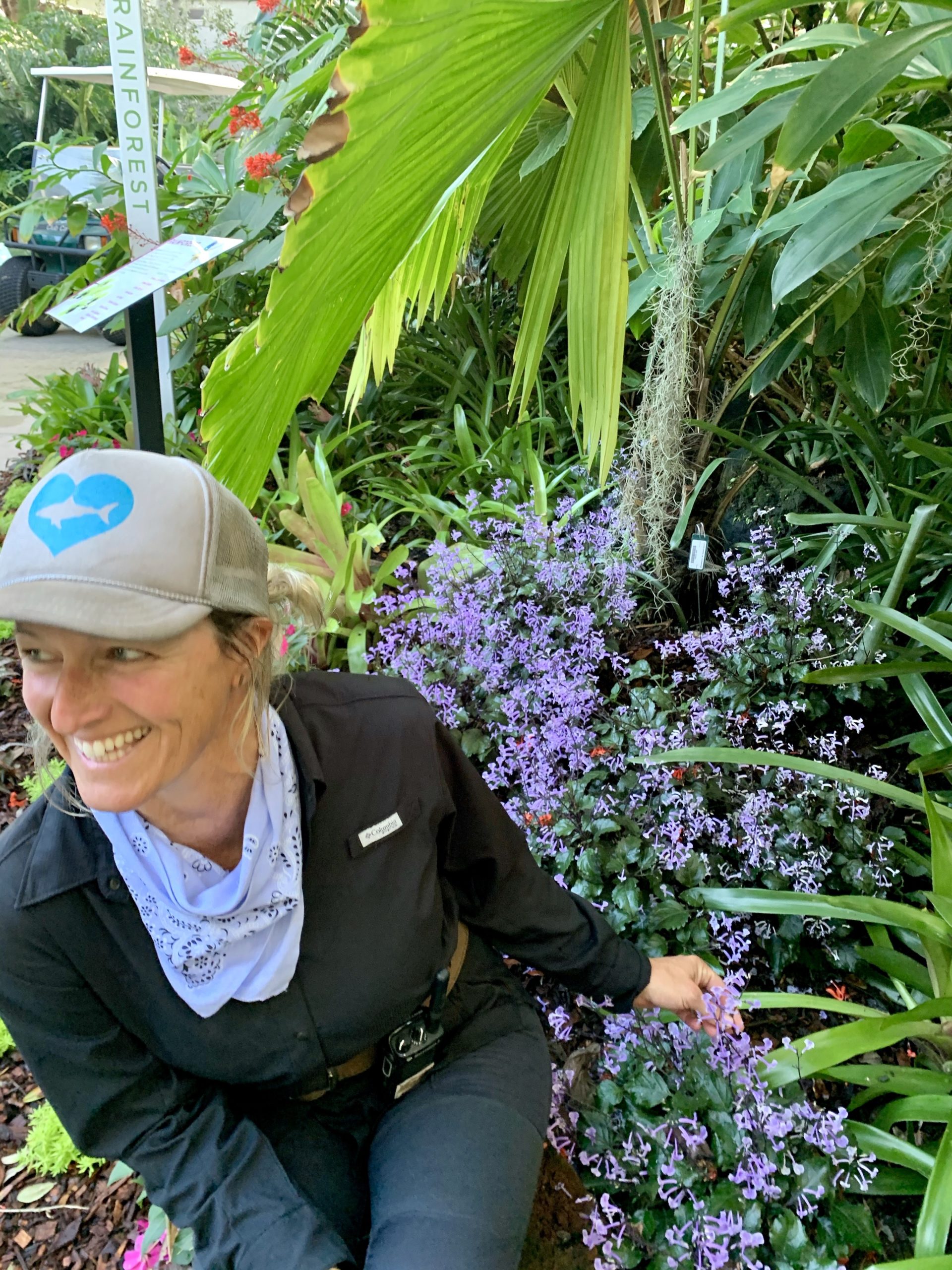 I am loving the Plectranthus (Mona Lavender) this year in the garden. You can find this beautiful perennial planted in shady, cool spots beneath the tree canopies. If you’re out hunting for a peek of it, you can visit the Plectranthus at the Downtown Sarasota campus behind the pergola and close to the koi pond. The gorgeous and unusual silver leaves and bright purple spikes will surely catch your attention.